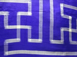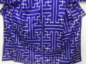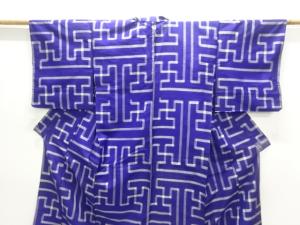 アンティーク 幾何学模様織出し銘仙単衣着物