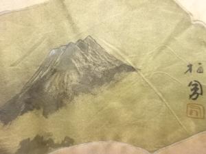 アンティーク 破れ色紙に富士・風景模様男物長襦袢