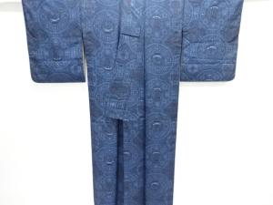 大正ロマン 抽象船に華紋模様単衣着物