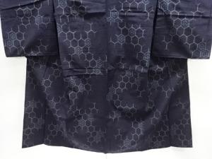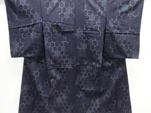 アンティーク 破れ亀甲に花模様織出し手織り紬単衣着物