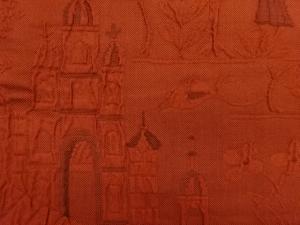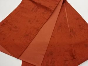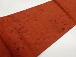 ふくれ織狩猟に城・鳥模様織出し全通洒落袋帯