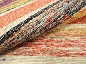 使い古した布地を細く裂いて手織機で織る織物。