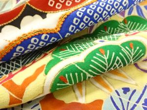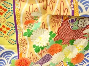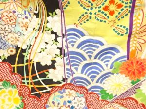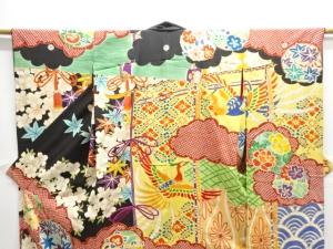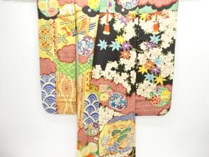 大正ロマン 錦紗檜扇に花鳥模様刺繍五つ紋花嫁衣装振袖・丸帯セット