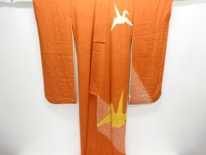 大正ロマン 錦紗折鶴模様三つ紋舞妓衣装引きずり(比翼付き)