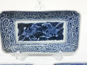 祥瑞(しょうずい)は染付の一種で、中国明末から清初にかけて景徳鎮窯で作られた磁器。幾何学文様を鮮やかな青藍色で模様を施す。