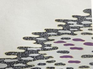 銀通し金彩抽象霞模様袋帯