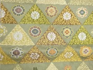 鱗に菊・松・華文模様織出し袋帯