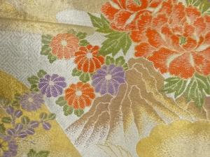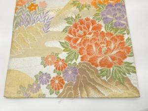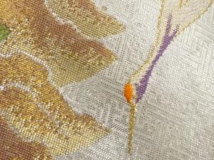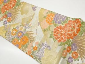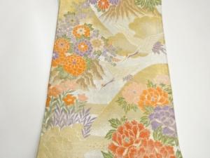 九百錦鶴に秋草・牡丹模様織出し袋帯
