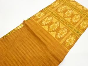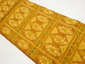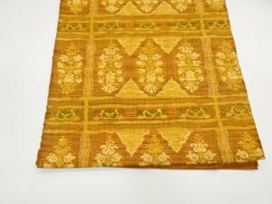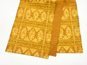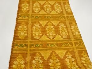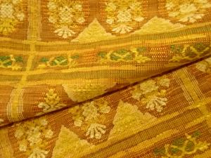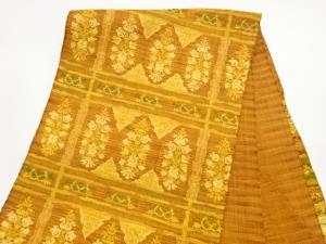 手織り真綿紬変わり格子に抽象模様織出し名古屋帯