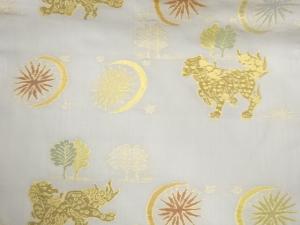 長谷川織物製 月に太陽・動物・草木模様織出し名古屋帯