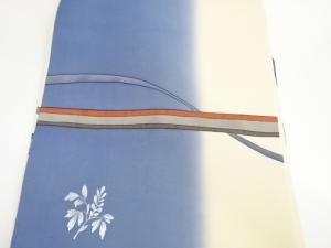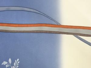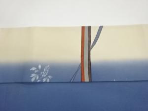 銀彩横縞に曲線・花葉模様名古屋帯