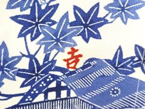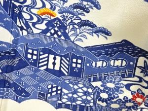 栗山吉三郎作 縮緬地 京紅型 家屋に草花模様訪問着