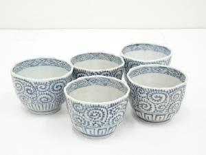 江戸末期 古伊万里 染付蛸唐草猪口5客