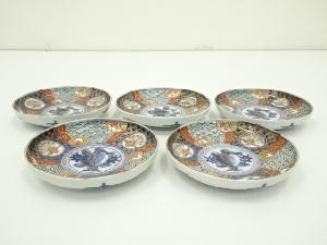 明治期 古伊万里 染錦青海波鳳凰文五寸皿5客
