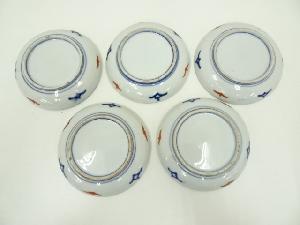明治期 古伊万里 染錦青海波鳳凰文五寸皿5客