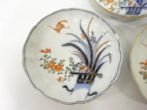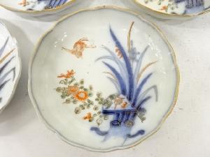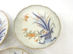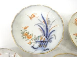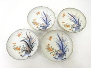古伊万里 染付赤絵 鶴に花 小皿 4客揃