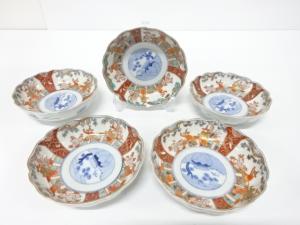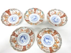 古伊万里 染錦 金彩色絵 なます皿 5客