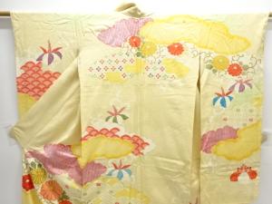 アンティーク 絞り雲取りに菊模様刺繍振袖