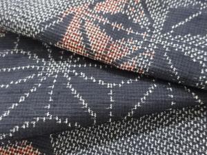 アンティーク 麻の葉模様織り出し十日町紬着物