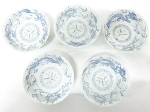 古伊万里 染付 線描き龍紋 なます皿 5客
