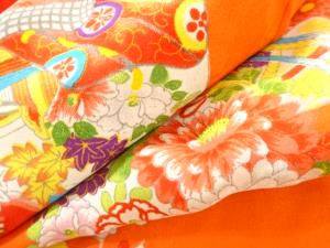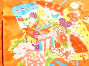 アンティーク 花鼓・檜扇模様着物