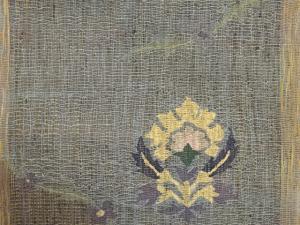One of the techniques of weaving textile. Woven with the non-twist thread as a warp, Sukui-ori textile has three-dimensional patterns on its surface.