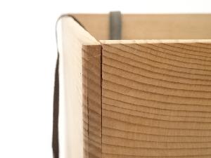 Some gaps between wooden panels of the box.