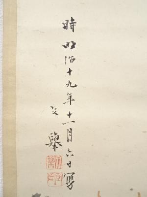 JAPANESE HANGING SCROLL / HAND PAINTED / SCENERY / MEIJI ERA (1886)