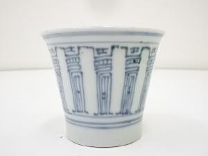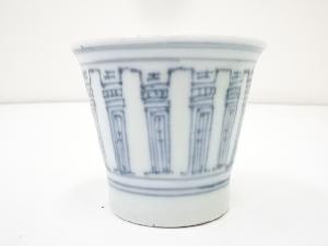 Blue and white porcelain. On the surface of biscuit firing pottery, designs are painted with cobalt oxide paint.
