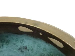 He studied under Jitsuzo Negoro, the holder of Important Intangible Cultural Property, and his works received a high evaluation for its new sense of style with traditional methods. He was recognized as a master of Heraoshi (to make decoration on surface of a cauldron by engraving outer flame using special sticks or spatulas.) and his works were called as “Seikou gamma” or “Jyousei gamma”.
