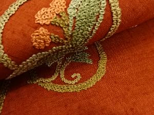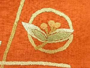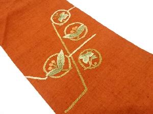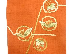 JAPANESE KIMONO / UNUSED NAGOYA OBI / SILK / HAND WOVEN TSUMUGI / ROUNDEL & IVY LEAVES & FLOWERS