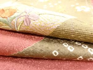 JAPANESE KIMONO / VINTAGE HOMONGI / SILK / SHIBORI / EMBROIDERY / FLORAL PLANTS