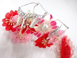 Tsumami-zaiku or Tsumami is a traditional Japanese craft made from small, square-cut pieces of cloth (usually Chirimen) that is pinched and folded with tweezers. It originated about 200 years ago during the Edo period.
