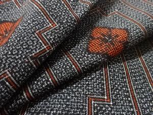 JAPANESE KIMONO / MURAYAMA OSHIMA TSUMUGI / GEOMETRIC PATTERN & FLOWER RHOMBUS