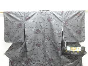 JAPANESE KIMONO / UNUSED / SILK / DORO OSHIMA TSUMUGI / WOVEN FLORAL PLANTS
