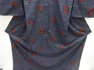 JAPANESE KIMONO / ANTIQUE ENSEMBLE KIMONO / SILK / DORO OSHIMA TSUMUGI / WOVEN FLOWER / 5MARUKI