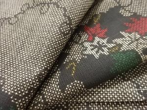 JAPANESE KIMONO / UNUSED / SILK / DORO OSHIMA TSUMUGI / WOVEN SNOWFLAKE & FLORAL PLANTS