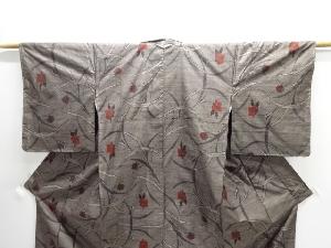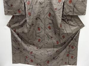 JAPANESE KIMONO / UNUSED / SILK / DORO OSHIMA TSUMUGI / WOVEN FLORAL PLANTS