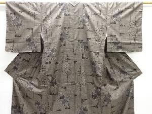 JAPANESE KIMONO / UNUSED / SILK / DORO OSHIMA TSUMUGI / WOVEN FLOWERS