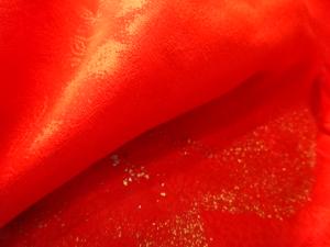 A Japanese silk satin damask. It has a shiny surface and is smooth to the touch.