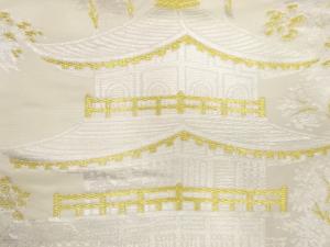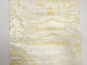 JAPANESE KIMONO / ANTIQUE FUKURO OBI / SILK / WOVEN KINKAKU TEMPLE