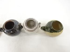 Most of Oribe Kuro (Kuro Oribe) products are chawans, and other Oribe ware are mostly table wares.