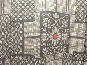 JAPANESE KIMONO / DORO OSHIMA TSUMUGI (5 maruki) / WOVEN FLOWER CREST