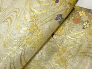Japanese paper coated in gold, silver or lacquer is used as the warp and the weft is dyed silk threads. Saga Nishiki has various woven patterns such as Ajiro(wickerwork-like pattern) and Saya(gossamer-figured pattern). It takes times to produce Saga Nishiki so only several inches are produced each day.