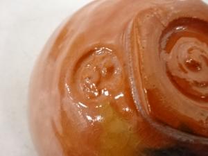 The third generation master is good at making copies of famous Rakuyaki tea bowls made by Raku Choujirou and so on. He mainly make Aka-Raku (red Rakuyaki) and Kuro-Raku (black Rakuyaki) tea utensils with traditional methods.