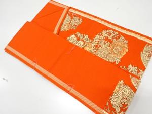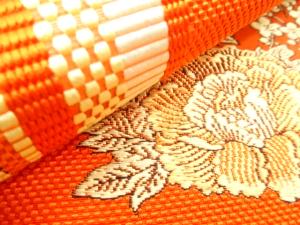 JAPANESE NAGOYA OBI / UNUSED / CHIKUZEN HAKATA / WOVEN FLOWER ROUNDEL
