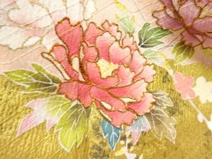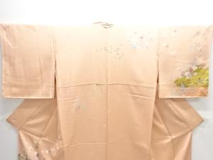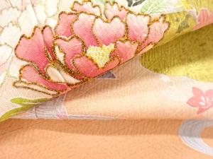 JAPANESE KIMONO / HOMONGI / SILK / EMBROIDERY / KINSAI / CLOUDS & FLORAL PLANTS