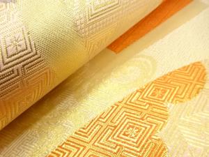 Japanese paper coated in gold, silver or lacquer is used as the warp and the weft is dyed silk threads. Saga Nishiki has various woven patterns such as Ajiro(wickerwork-like pattern) and Saya(gossamer-figured pattern). It takes times to produce Saga Nishiki so only several inches are produced each day.