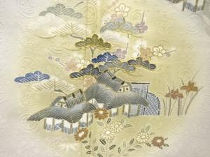 Chayatsuji is one of the tradition design of Kimono that a house and flowers are drawn in the waterside scenery.