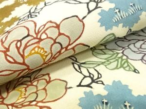 JAPANESE KIMONO / ANTIQUE NAGOYA OBI / SILK / KATAZOME / TSUMUGI / PEONY